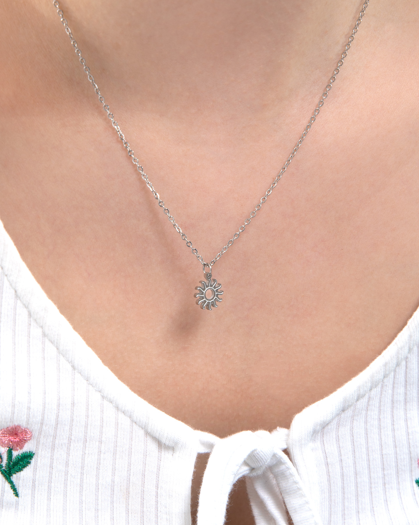 Solis begleitet dich durch Tag und Nacht - denn du strahlst von innen. Die Kette Solis lässt sich mit jedem Casual Outfit verbinden.
