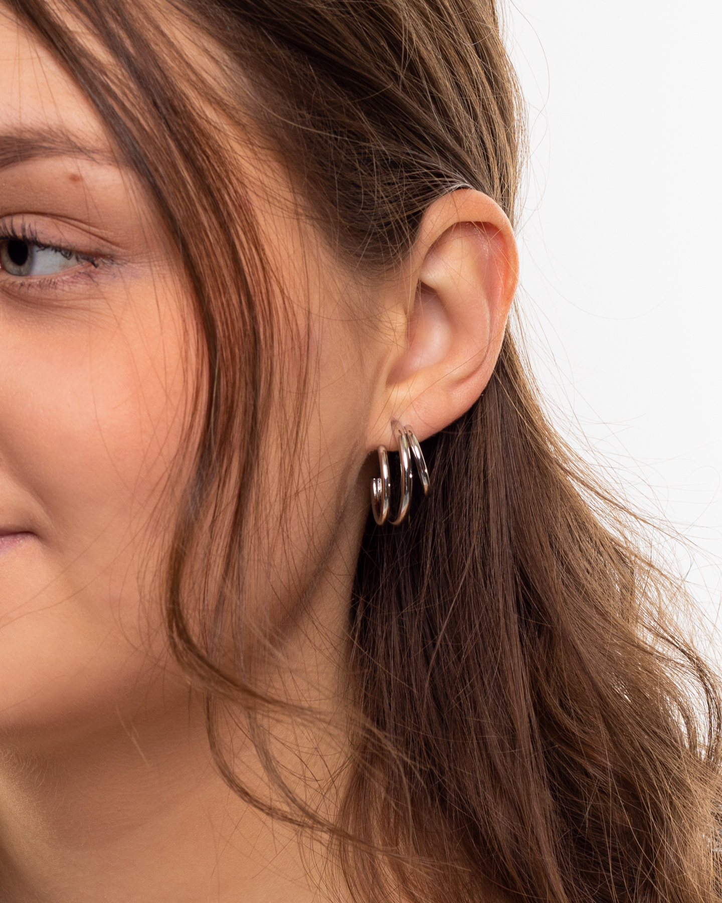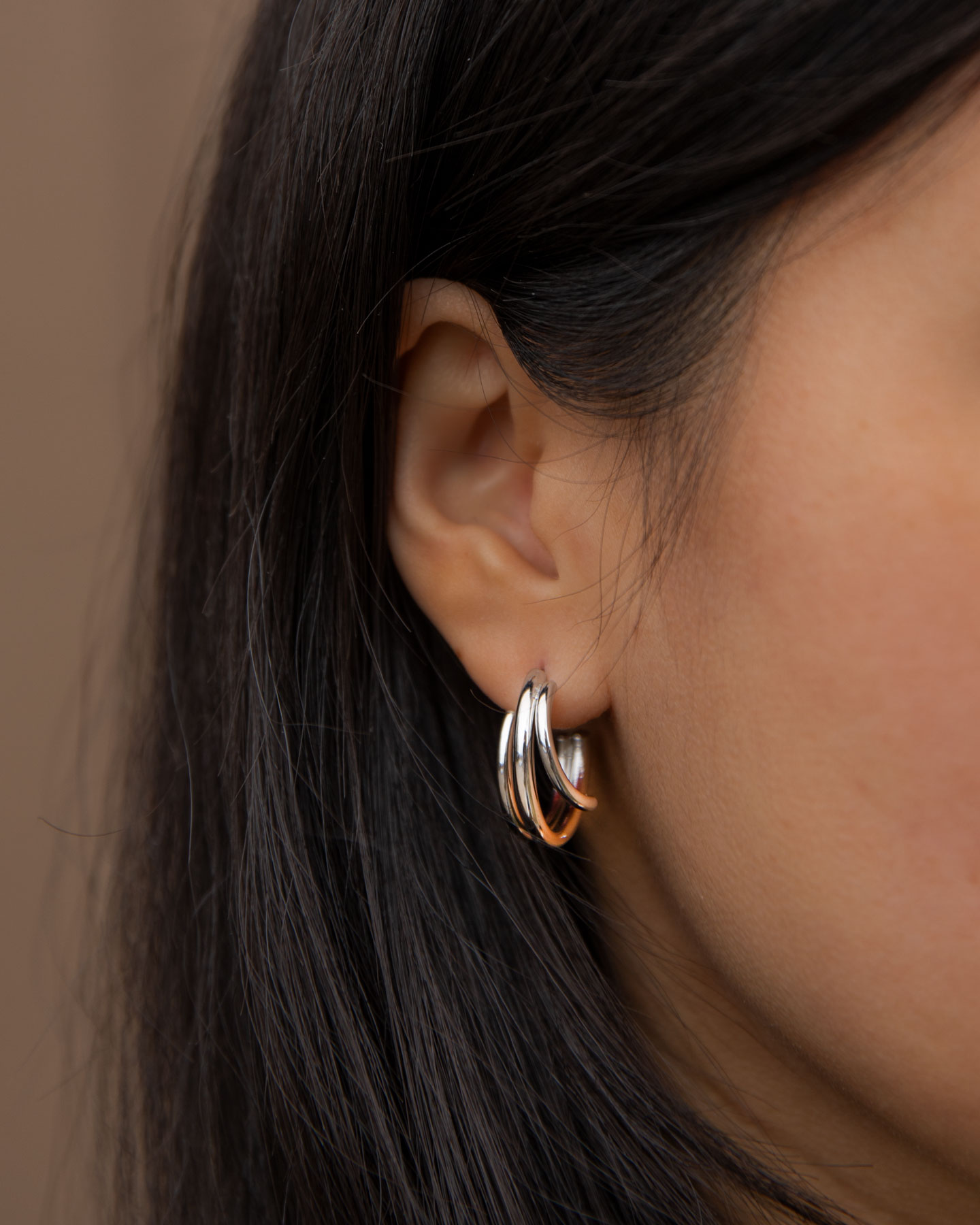 Setze mit Daisy ein Highlight! Dieses schwungvolle Schmuckstück ist definitiv etwas Besonderes. Die drei miteinander verbundenen Creolen haben unterschiedliche Längen und symbolisieren damit das facettenreiche Etwas dieser Ohrringe.